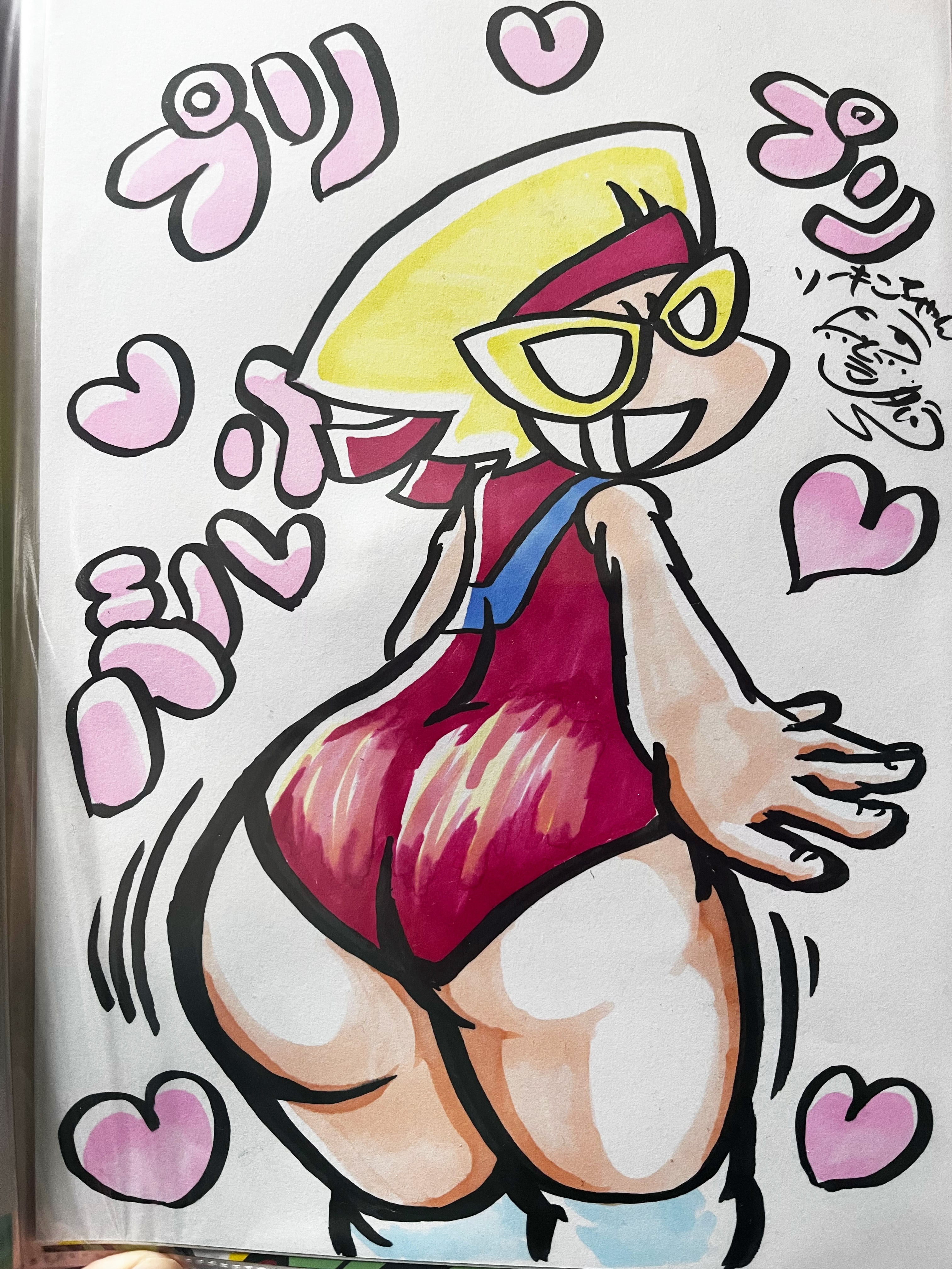 A4サイズの画用紙にアルコールペンで色塗り塗りーもこちゃんしたりーもこちゃん直筆りーもこちゃん生イラストちゃんのお尻強調可愛い子ちゃん